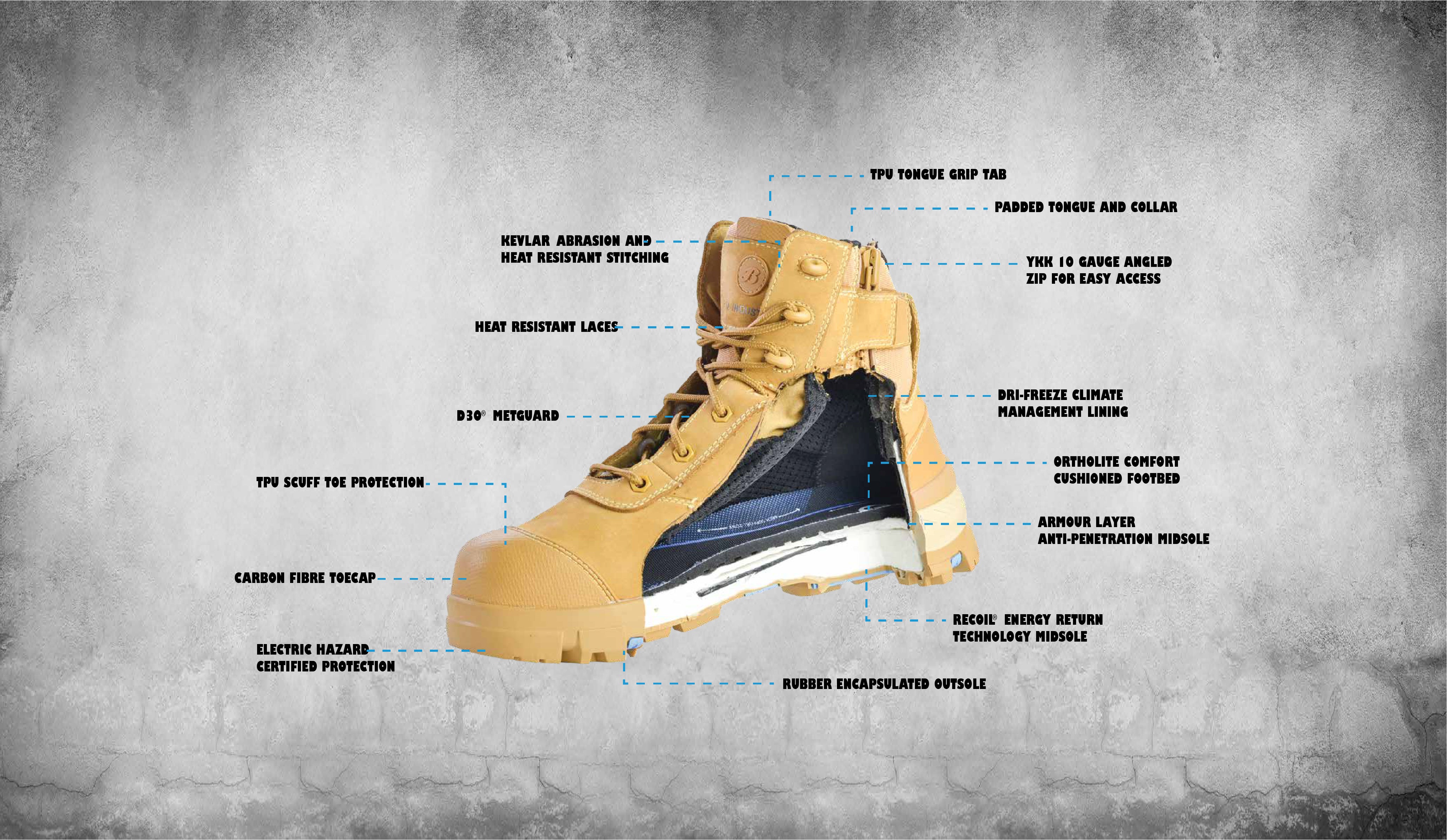 The Longreach Ultra Zip Up is a next-gen composite safety boot from the Helix Range by Bata Industrials, built for demanding Australian worksites. This boot combines modern lightweight materials with cutting-edge protection to deliver unmatched comfort, grip and durability.